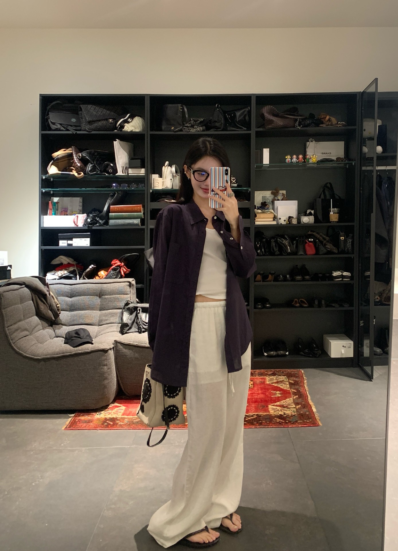 HUESTUDIOS 慵懶透感亞麻寬鬆襯衫(2 colors)