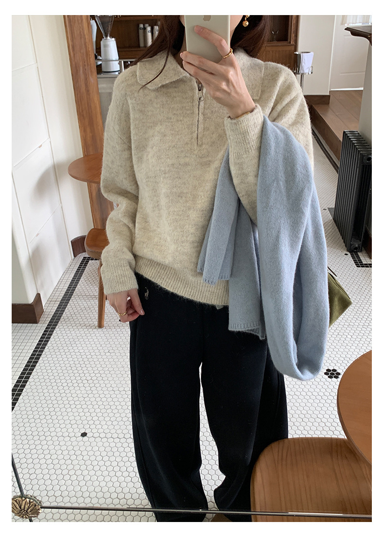 HUESTUDIOS polo領拉鍊針織上衣 / 2 colors