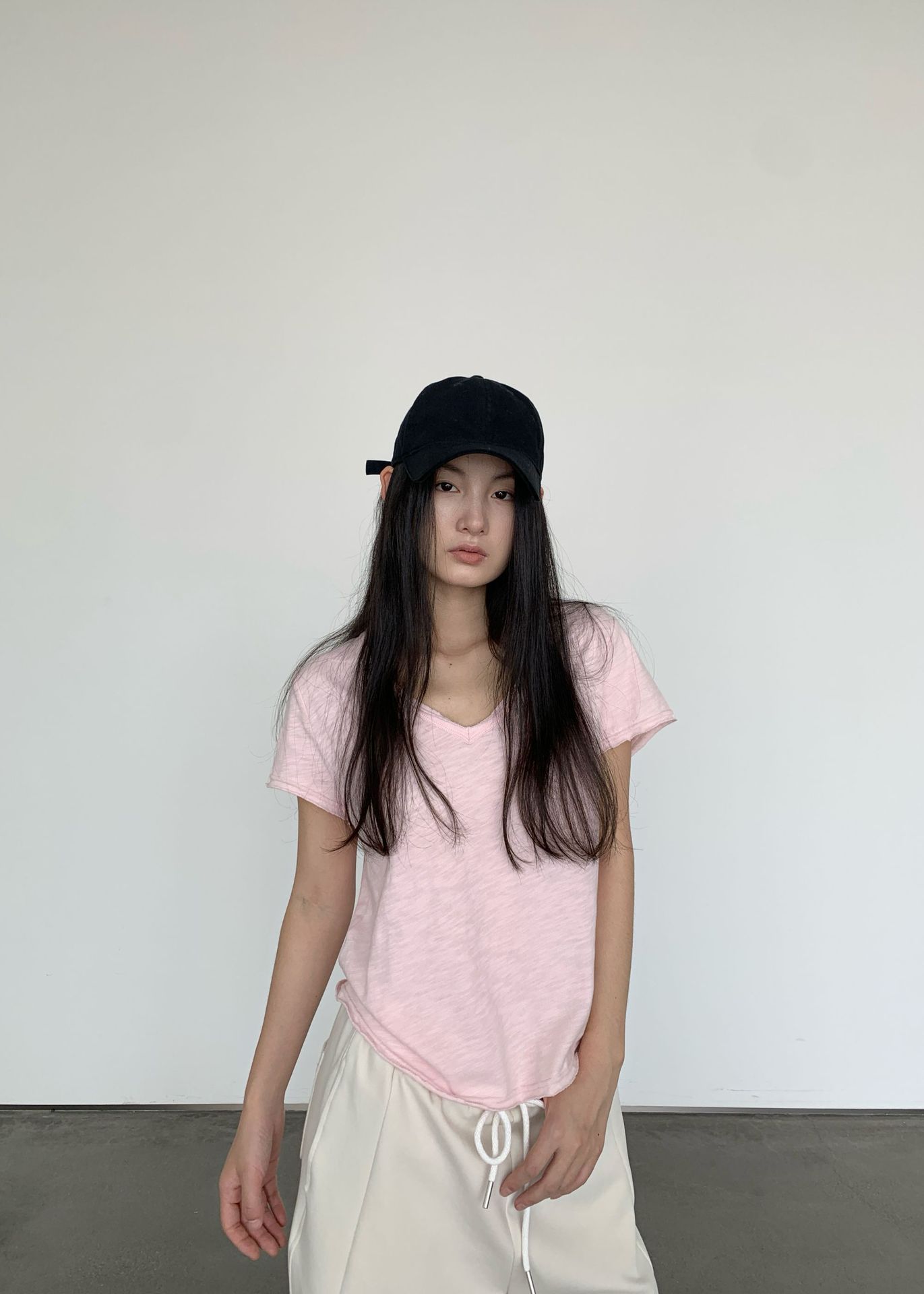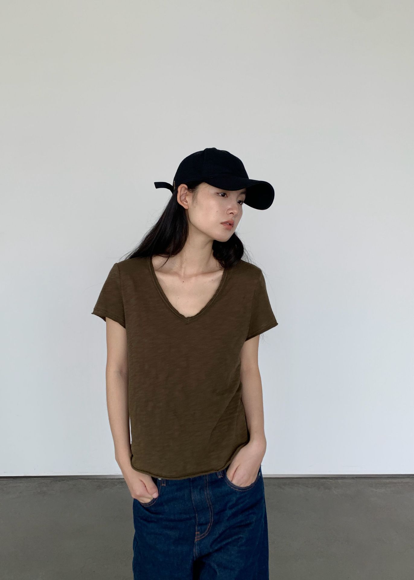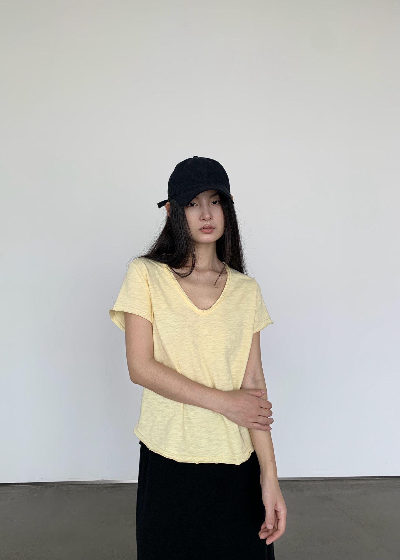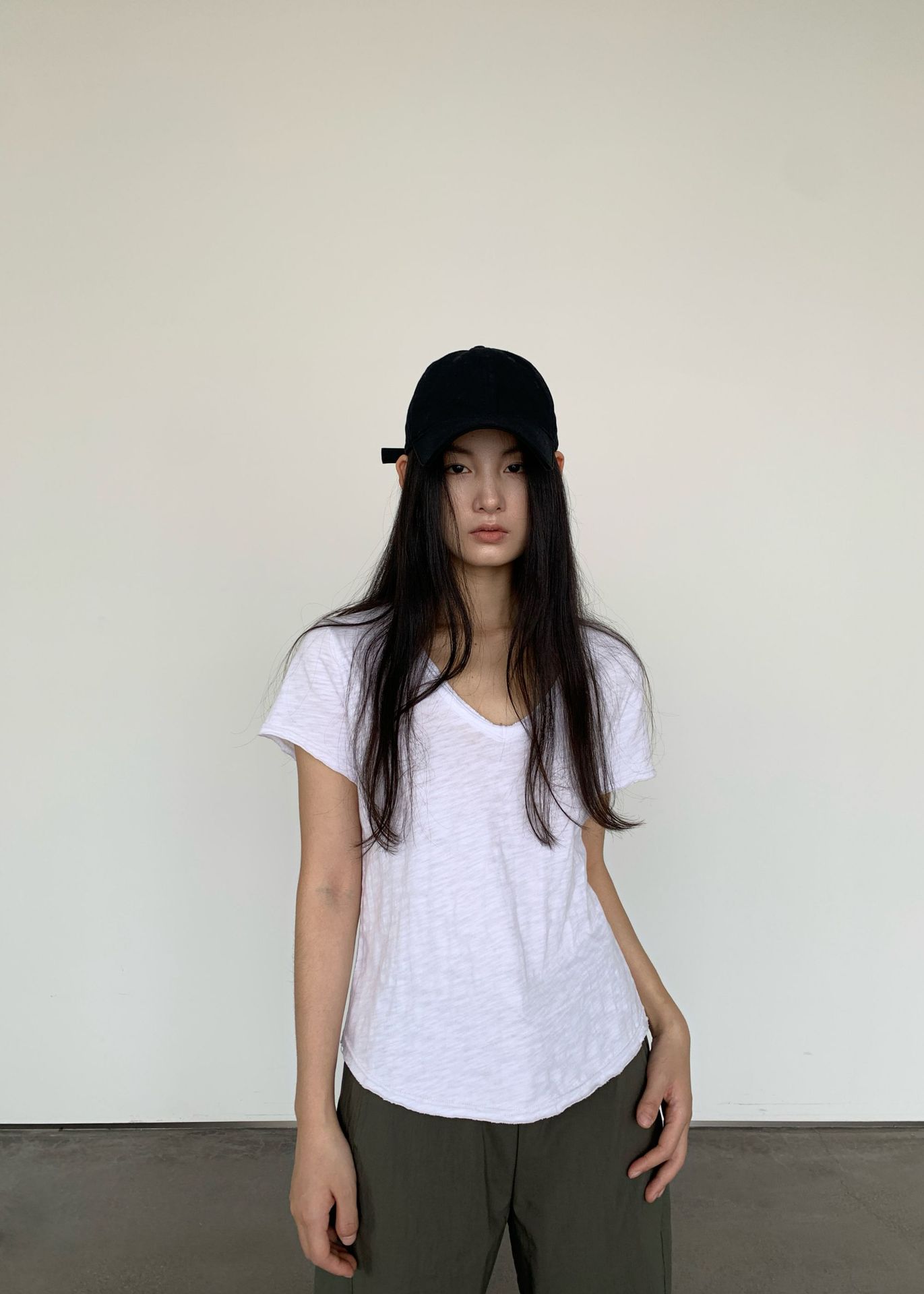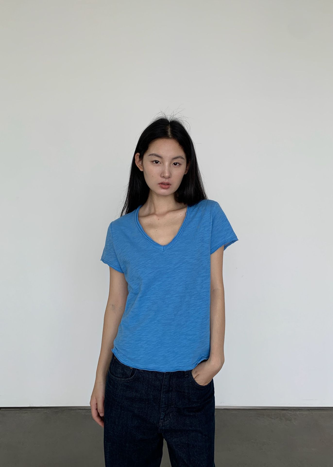 HUESTUDIOS 竹節棉v領卷邊短tee / 8 colors