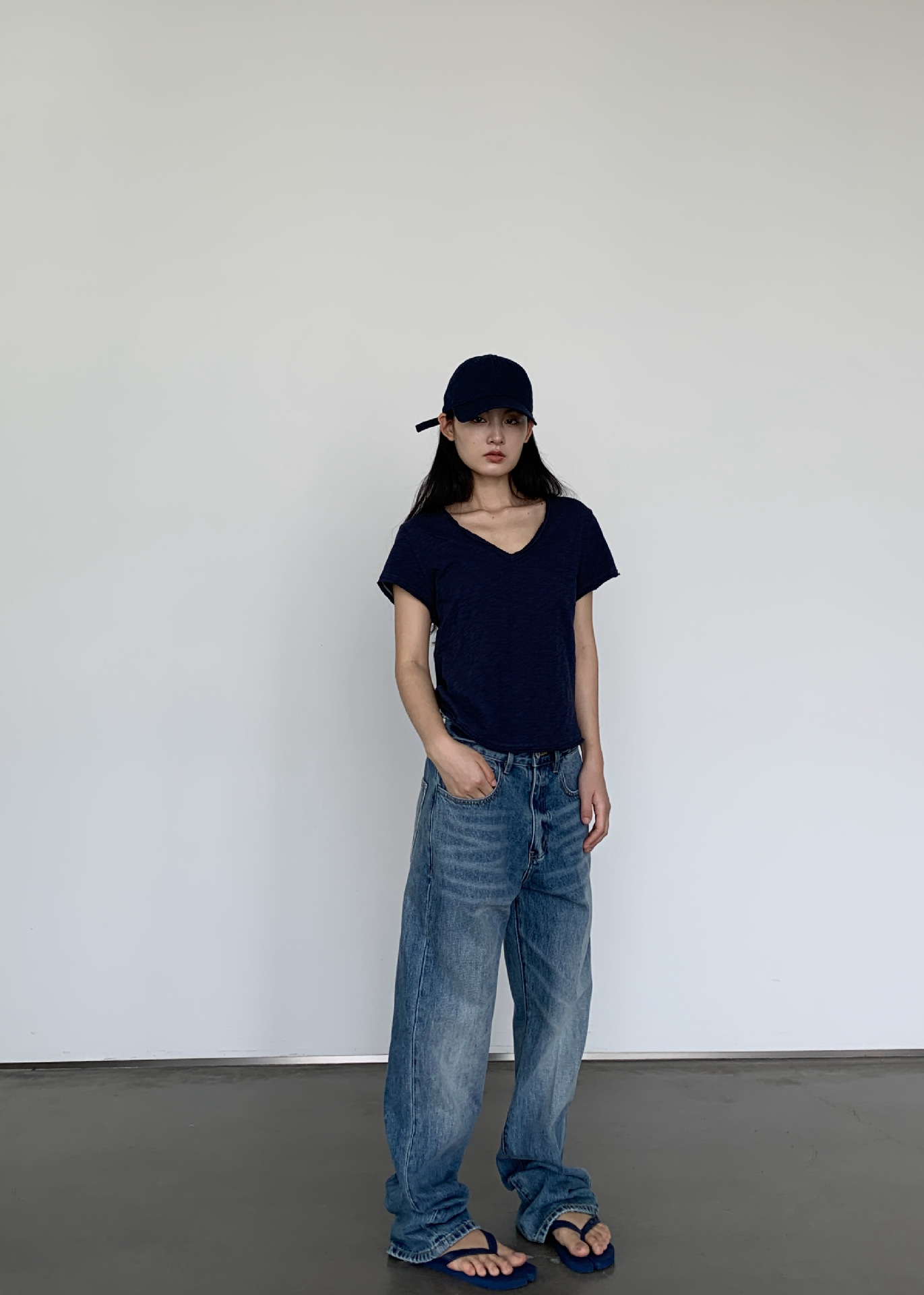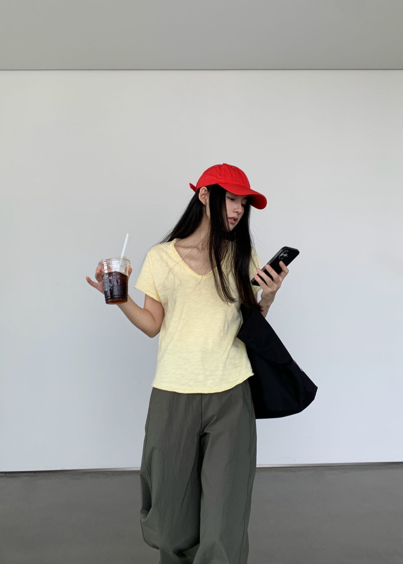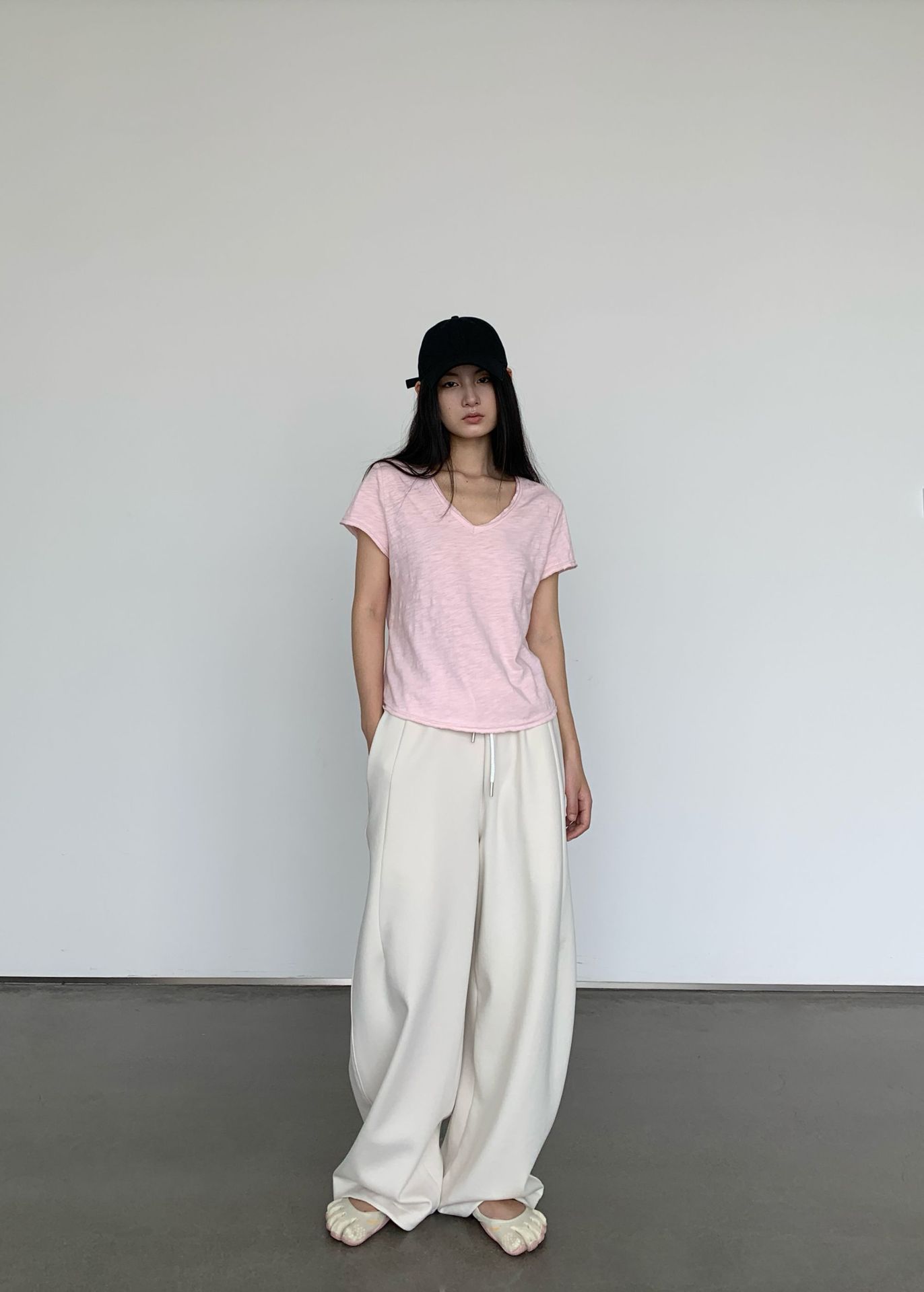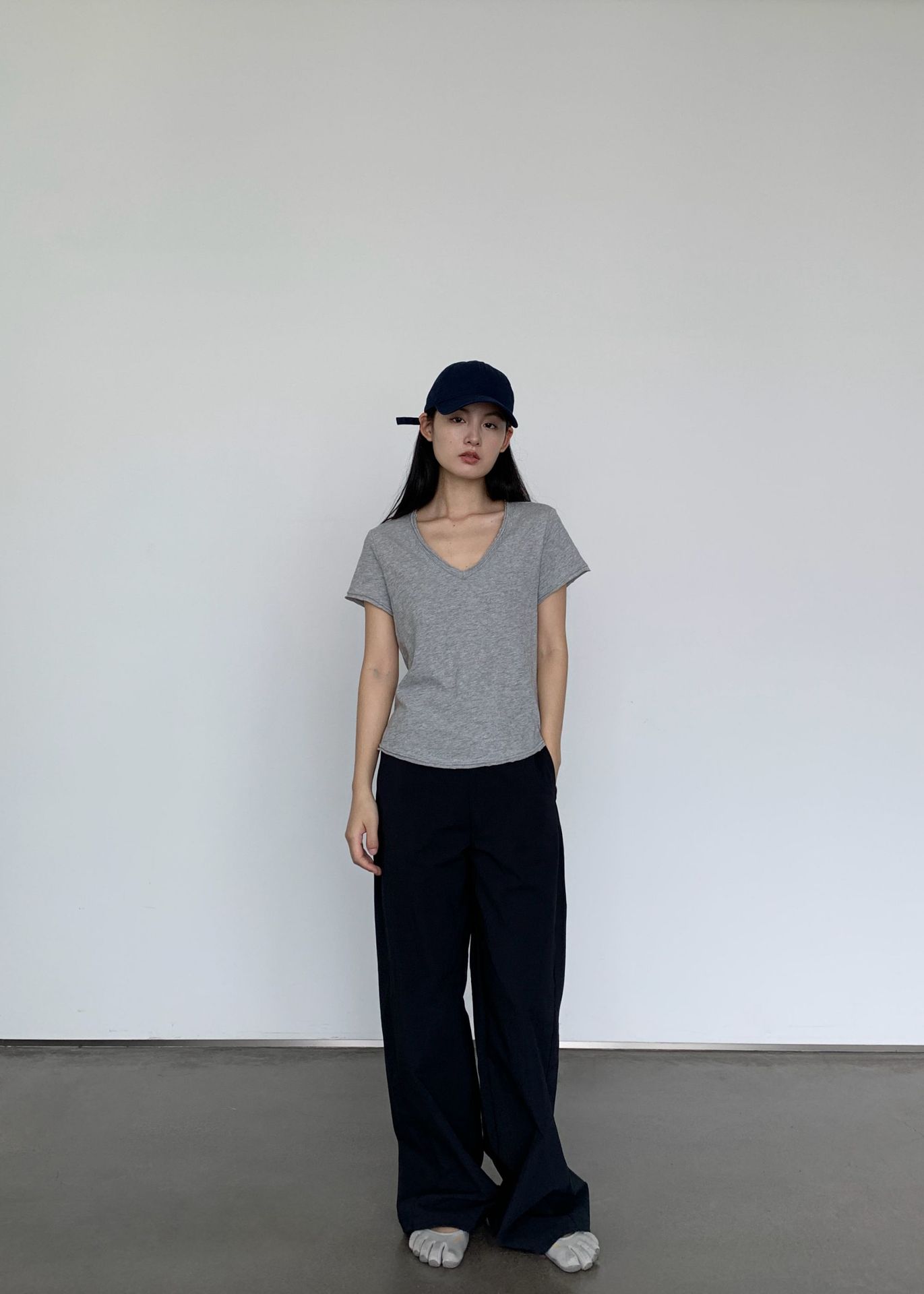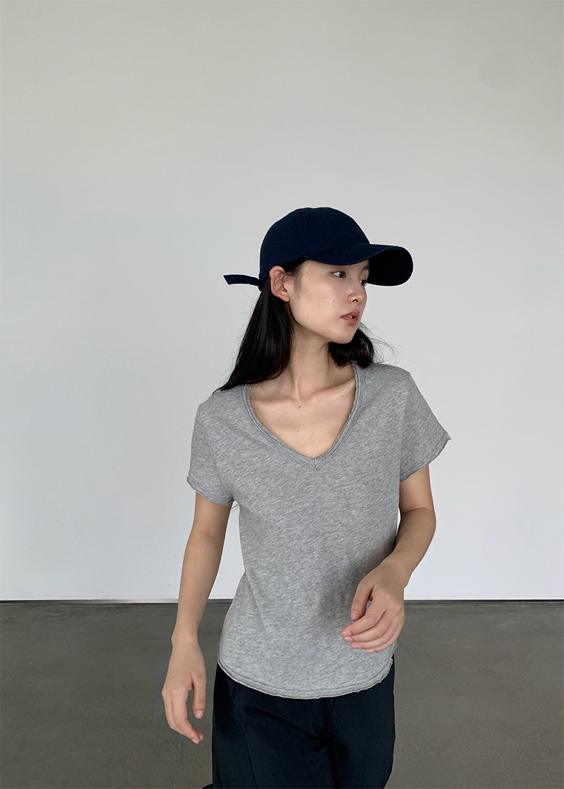 HUESTUDIOS 竹節棉v領卷邊短tee / 8 colors